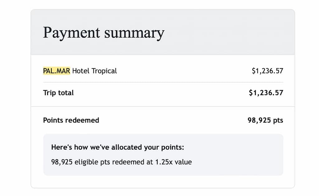 Hot Tip: Pal.Mar appears on Rocketmiles.com, offering boosted Atmos Rewards points. If you’re working toward Atmos status, this can be a great way to stack value. Read my previous post where I do a deep dive on Rocketmiles and Atmos points boost.